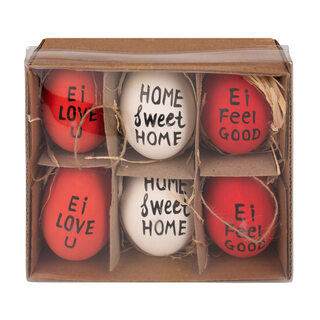 Ostereier Kunststoff 'Statement' rot/weiß/rot 6 cm, 6 Stk.