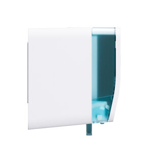 Die clevere, flexible Lösung auch für kleinste Toilettenkabinen. Der Spender fasst bis zu zwei kleine oder mittlere Rollen Hygienepapier; die Ersatzrolle ist separat integriert und sichert so eine langfristige Hygiene. Für mittlere bis hohe Frequenzen.